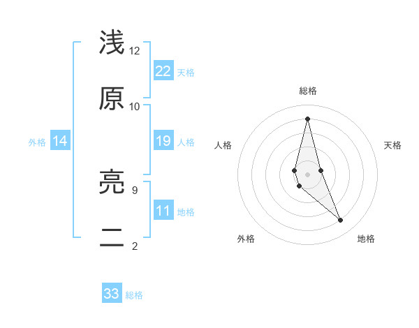 浅原 亮二さんの総格は33画の4点!