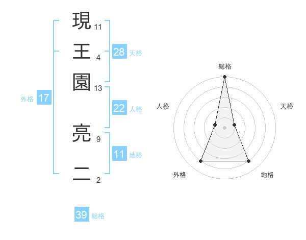 現王園 亮二さんを姓名の画数から五運を鑑定