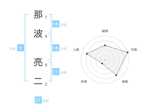 那波 亮二さんの総格は27画の3点!