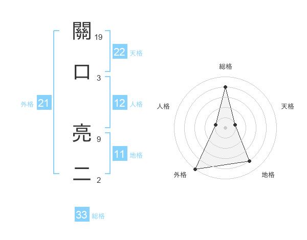 關口 亮二さんの総格は33画の4点!
