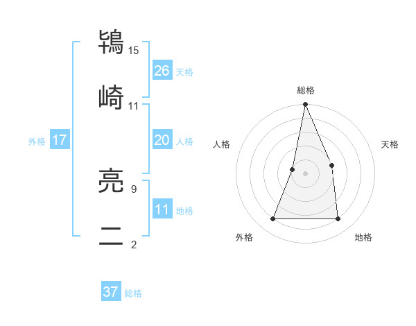 鴇崎 亮二さんを姓名の画数から五運を鑑定