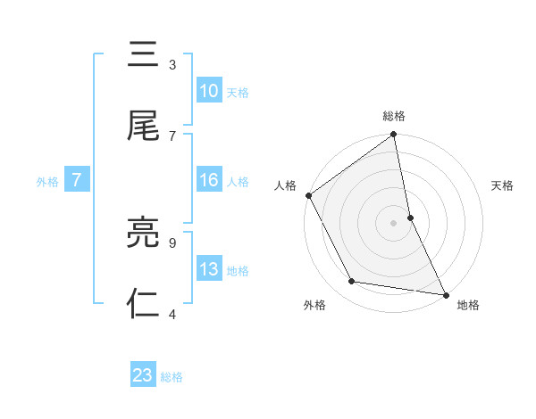 三尾 亮仁さんの総格は23画の5点!