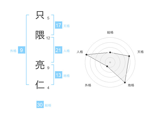 只隈 亮仁さんを姓名の画数から五運を鑑定
