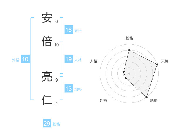 安倍 亮仁さんの天格は16画の5点!
