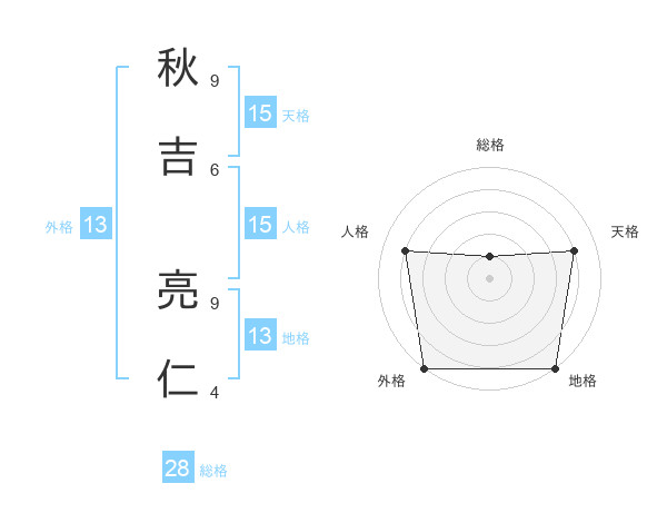 秋吉 亮仁さんを姓名の画数から五運を鑑定