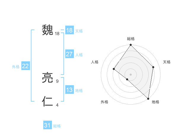 魏 亮仁さんの総格は31画の5点