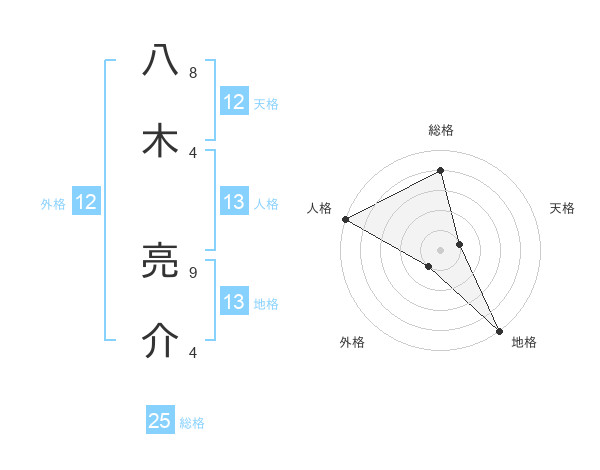 八木 亮介さんの地格は13画の5点!