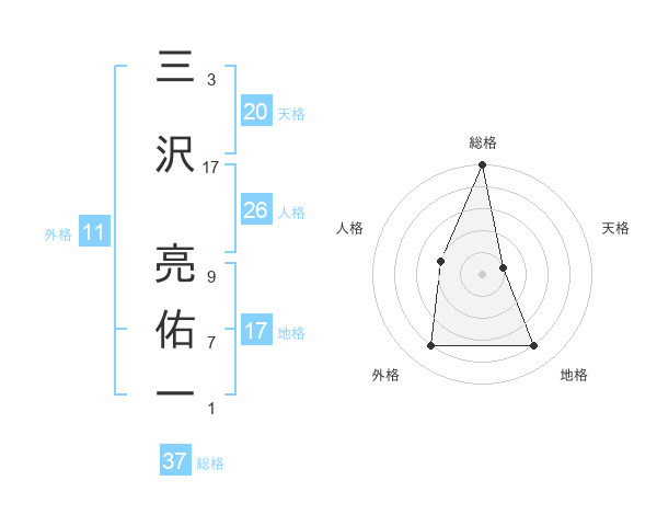 三沢 亮佑一さんを姓名の画数から五運を鑑定