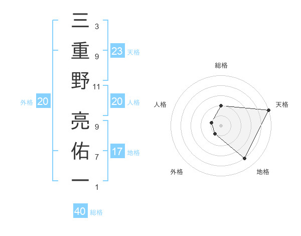 三重野 亮佑一さんを姓名の画数から五運を鑑定