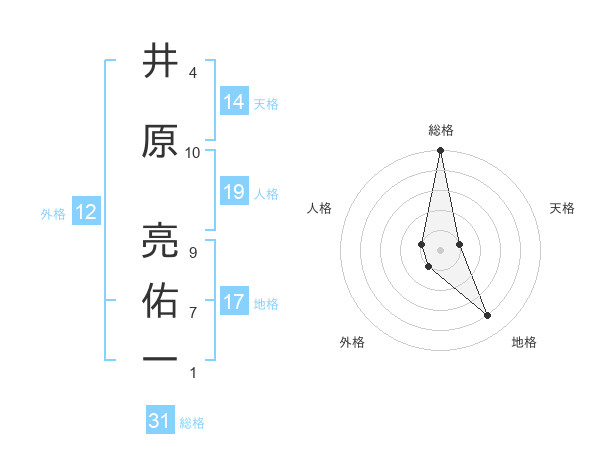 井原 亮佑一さんを姓名の画数から五運を鑑定
