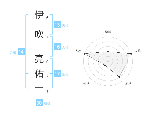 伊吹 亮佑一さんを姓名の画数から五運を鑑定