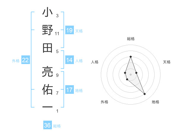 小野田 亮佑一さんを姓名の画数から五運を鑑定