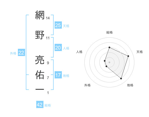 網野 亮佑一さんの地格は17画の4点!