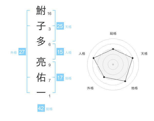 鮒子多 亮佑一さんを姓名の画数から五運を鑑定