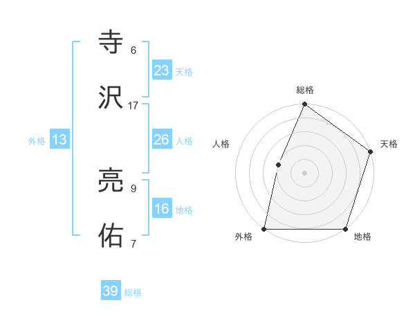 寺沢 亮佑さんの外格は13画の5点!
