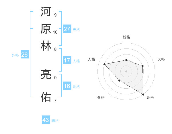 河原林 亮佑さんの総格は43画の2点!