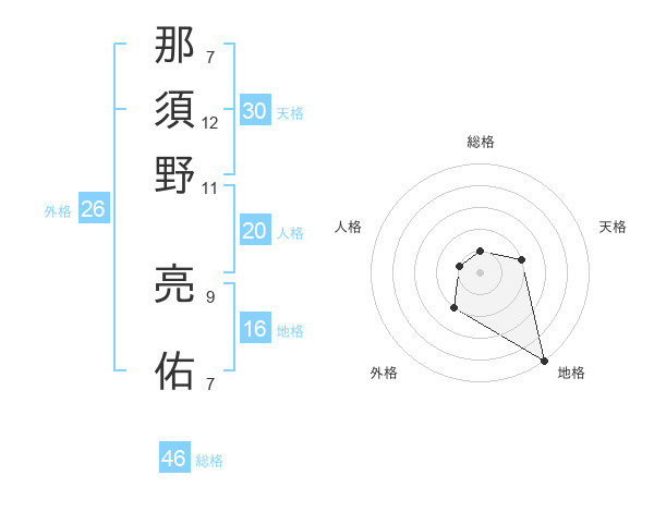 那須野 亮佑さんを姓名の画数から五運を鑑定