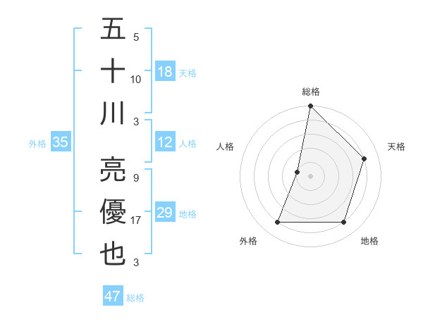 五十川 亮優也さんを姓名の画数から五運を鑑定