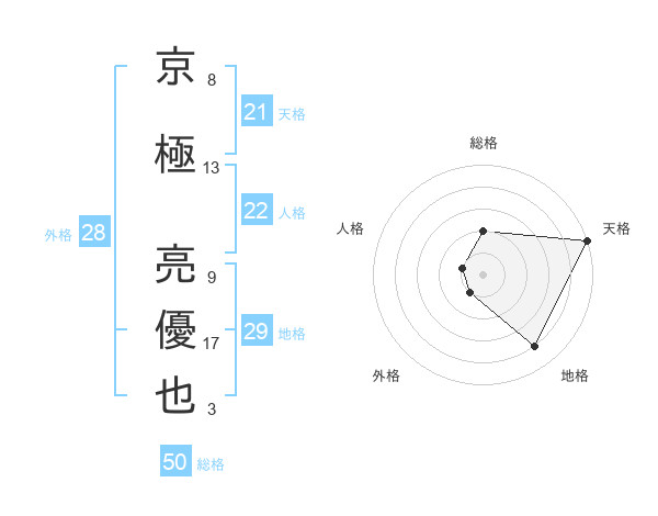 京極 亮優也さんを姓名の画数から五運を鑑定