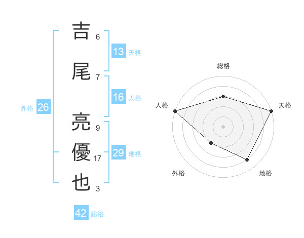 吉尾 亮優也さんの総格は42画の3点!