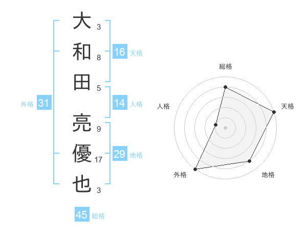 大和田 亮優也さんを姓名の画数から五運を鑑定