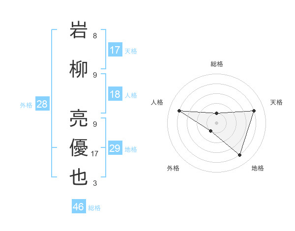 岩柳 亮優也さんの総格は46画の1点!