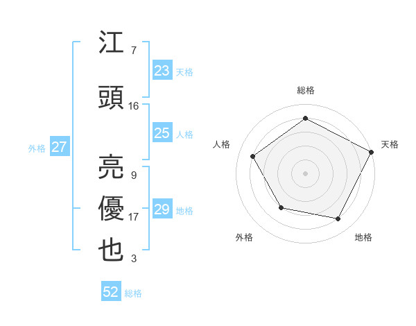 江頭 亮優也さんを姓名の画数から五運を鑑定
