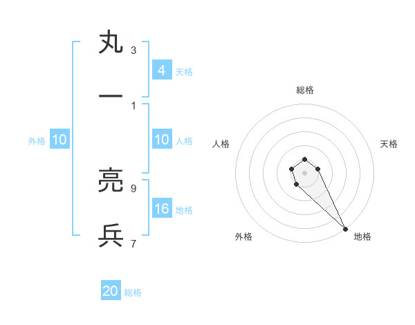 丸一 亮兵さんの総格は20画の1点!