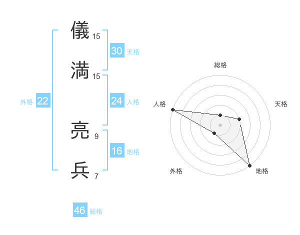 儀満 亮兵さんの総格は46画の1点!