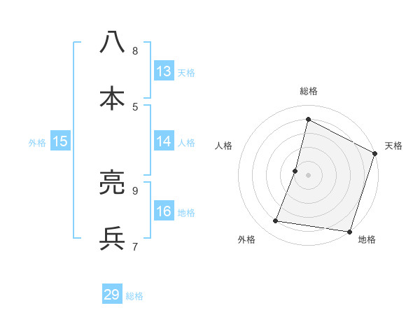 八本 亮兵さんの総格は29画の4点!