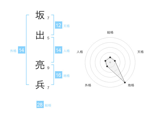 坂出 亮兵さんの地格は16画の5点!