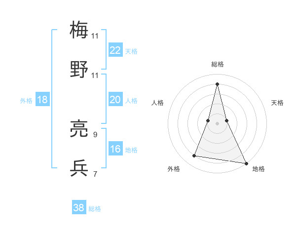 梅野 亮兵さんの総格は38画の4点!