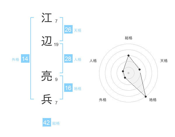 江辺 亮兵さんを姓名の画数から五運を鑑定