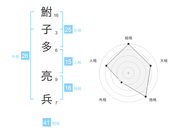 鮒子多 亮兵さんを姓名の画数から五運を鑑定