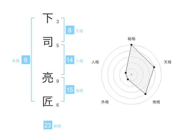 下司 亮匠さんの総格は23画の5点!