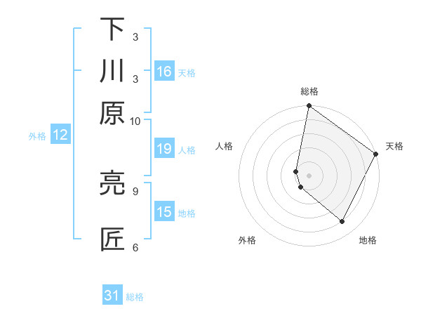 下川原 亮匠さんの総格は31画の5点!