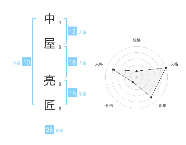 中屋 亮匠さんを姓名の画数から五運を鑑定