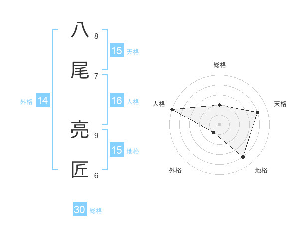 八尾 亮匠さんの総格は30画の2点!