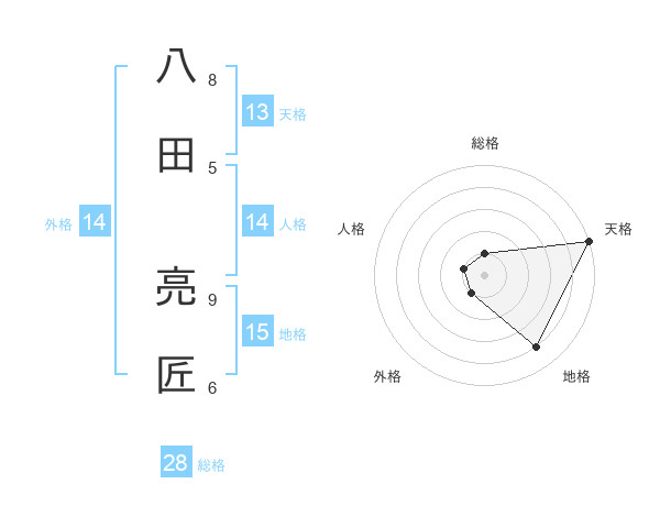 八田 亮匠さんを姓名の画数から五運を鑑定