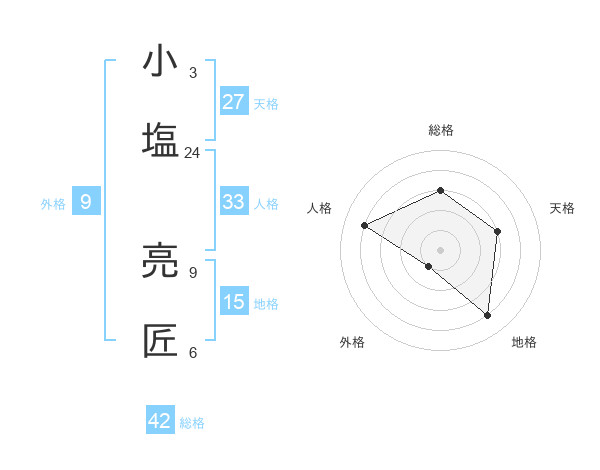 小塩 亮匠さんを姓名の画数から五運を鑑定