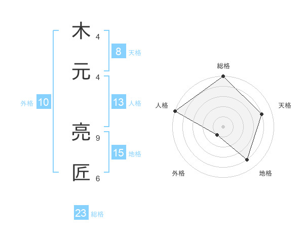 木元 亮匠さんの総格は23画の5点!