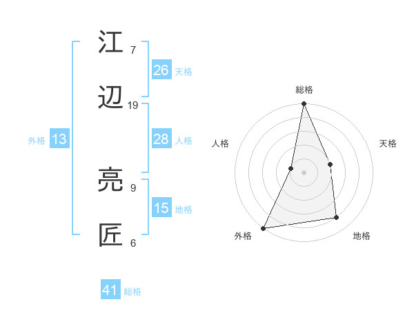 江辺 亮匠さんの外格は13画の5点!