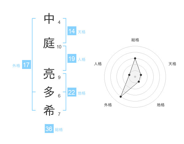 中庭 亮多希さんの外格は17画の4点!