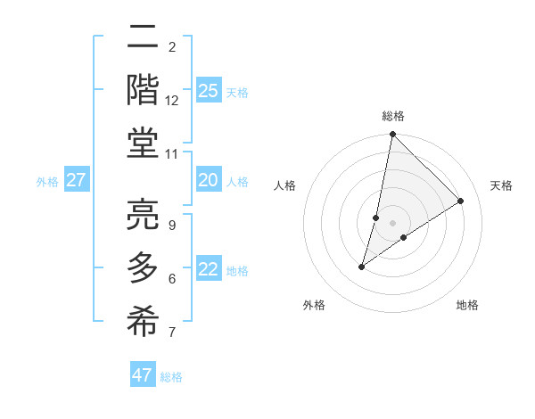二階堂 亮多希さんの総格は47画の5点!
