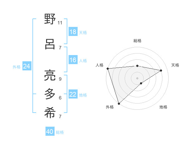 野呂 亮多希さんの外格は24画の5点!