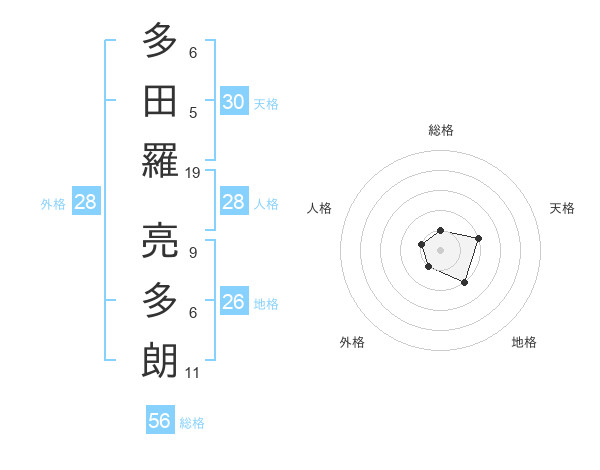 多田羅 亮多朗さんを姓名の画数から五運を鑑定
