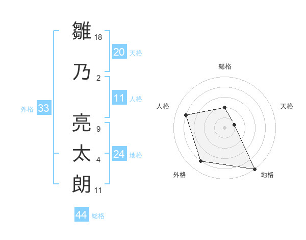 雛乃 亮太朗さんの総格は44画の2点!