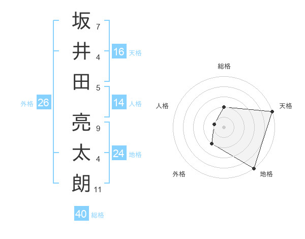 坂井田 亮太朗さんを姓名の画数から五運を鑑定