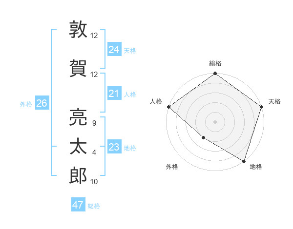 敦賀 亮太郎さんを姓名の画数から五運を鑑定