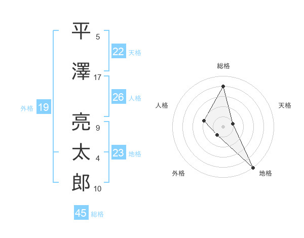 平澤 亮太郎さんの総格は45画の4点!